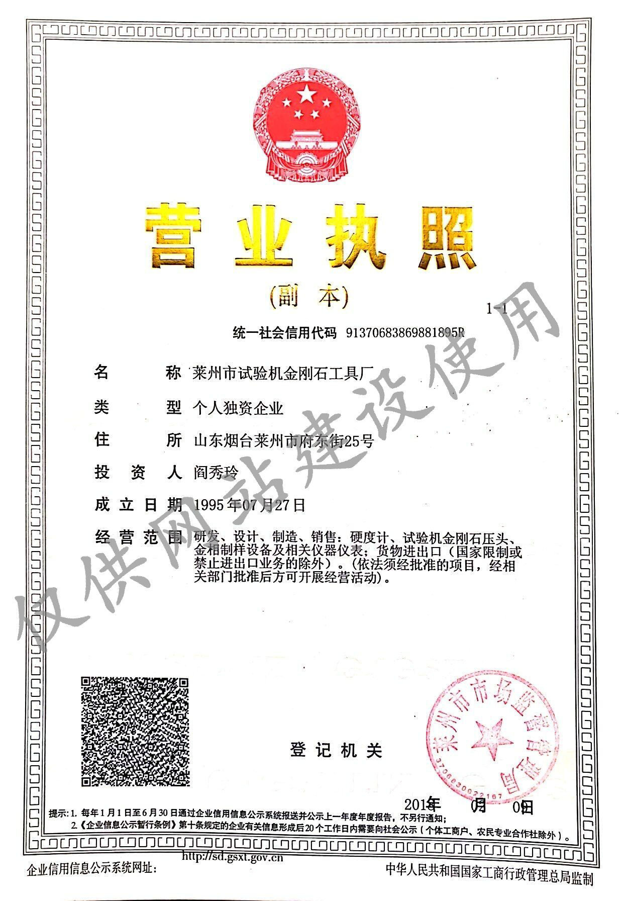 萊州市試驗(yàn)機(jī)金剛石工具廠(chǎng)是我國(guó)早期一批成立的、規(guī)范取得計(jì)量器具生產(chǎn)許可證的正規(guī)生產(chǎn)廠(chǎng)家(CMC量制魯字06250117號(hào)),注冊(cè)商標(biāo)為【萊金】。自建廠(chǎng)以來(lái)始終以掌握核心技術(shù)、力行精細(xì)加工、注重技術(shù)創(chuàng)新、質(zhì)控嚴(yán)格苛刻在業(yè)界馳名,經(jīng)過(guò)近30年的勵(lì)精圖治,現(xiàn)已形成標(biāo)準(zhǔn)化和系列化的各類(lèi)國(guó)優(yōu)級(jí)硬度計(jì)、金剛石壓頭、光學(xué)儀器等計(jì)量檢測(cè)產(chǎn)品。
